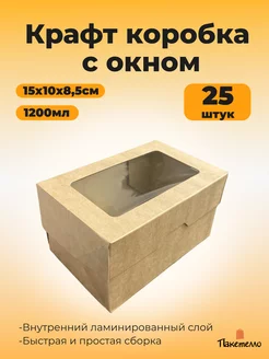 Крафт коробка с окном - 15х10х8,5 см, 25штук