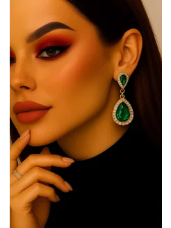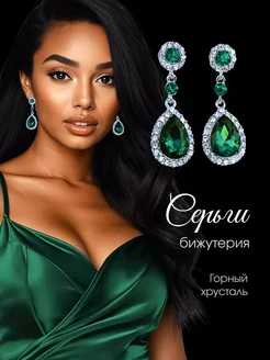 Серьги бижутерия винтажные в ретро с зеленым камнем