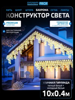 Гирлянда уличная бахрома с мерцанием, 10*0,4м, теплый белый