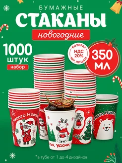Стаканы бумажные одноразовые 350 мл 1000 шт новогодние