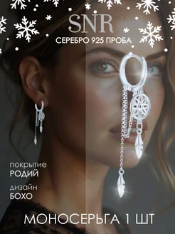 Моносерьга серебряная конго