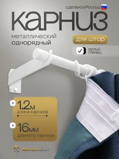 Карниз для штор настенный однорядный 1.2м с 12 кольцами
