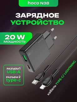 Быстрая зарядка для iPhone + кабель Type-c to Lightning