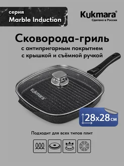 Сковорода 28 см с крышкой для индукции съемная ручка