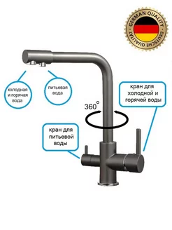 Смеситель на кухню с фильтром питьевой воды GMP, серый