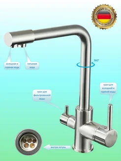 Смеситель для кухни с фильтром для питьевой воды GMP, никель