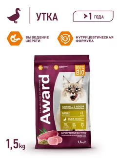 Сухой корм для кошек с уткой и индейкой 1,5кг
